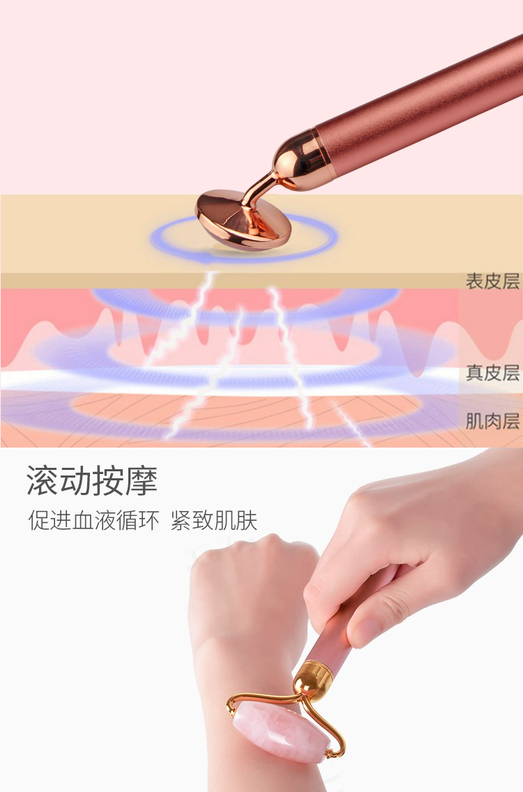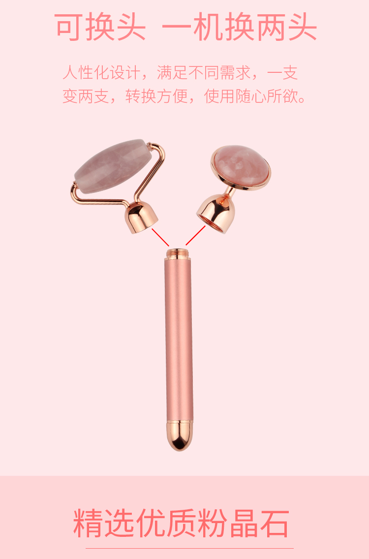粉晶玉石滾輪美容棒