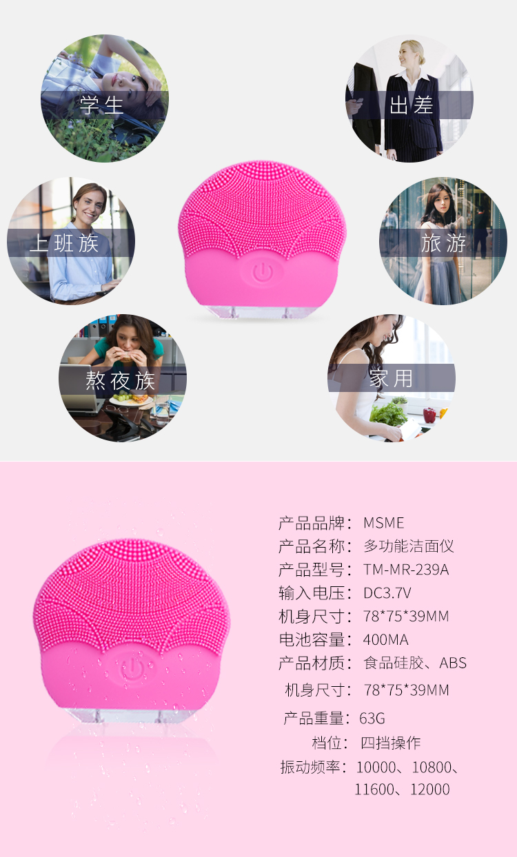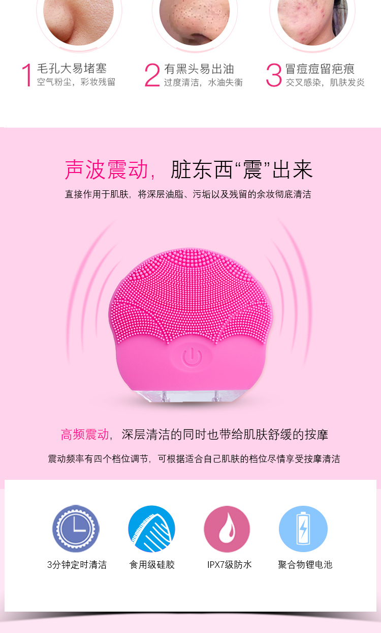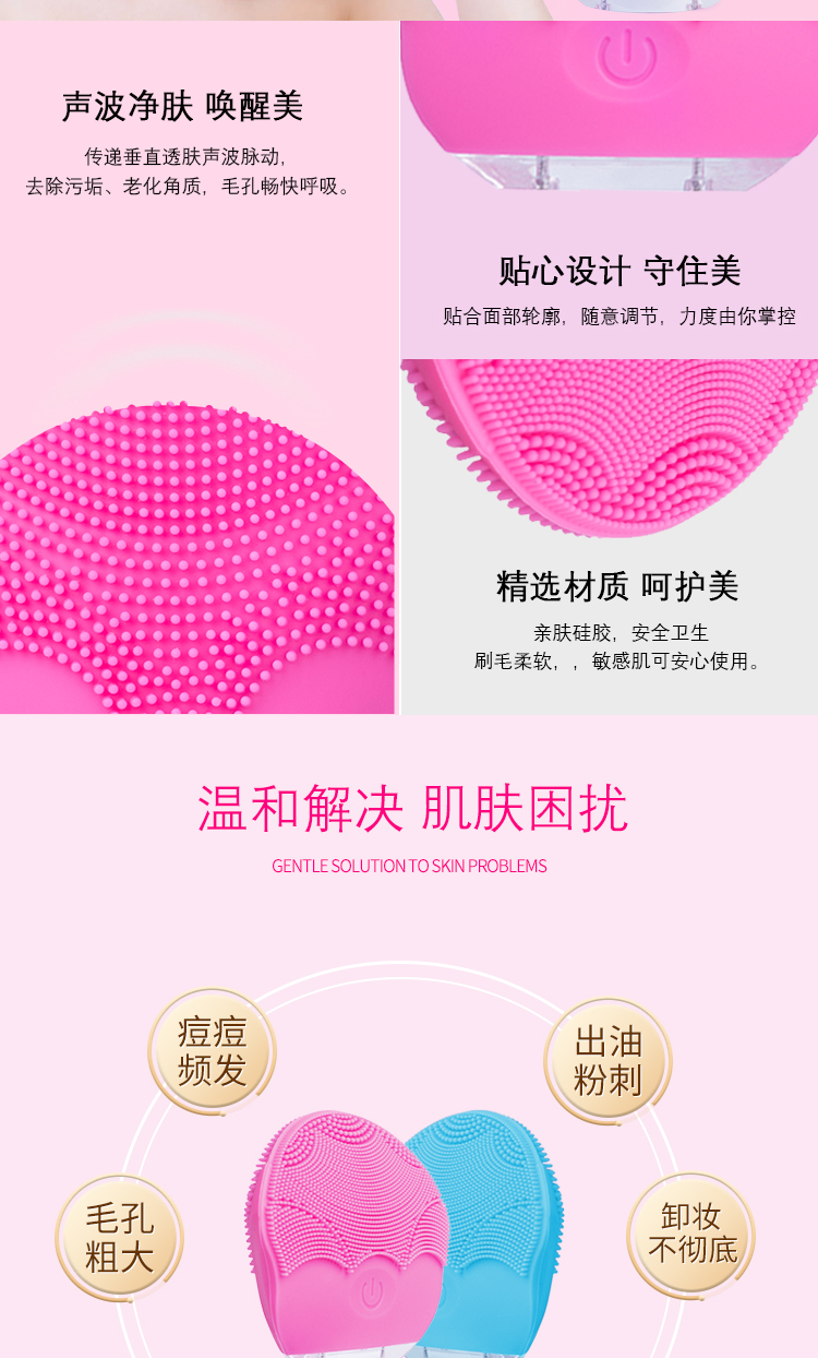 花瓣聲波電動硅膠洗臉刷