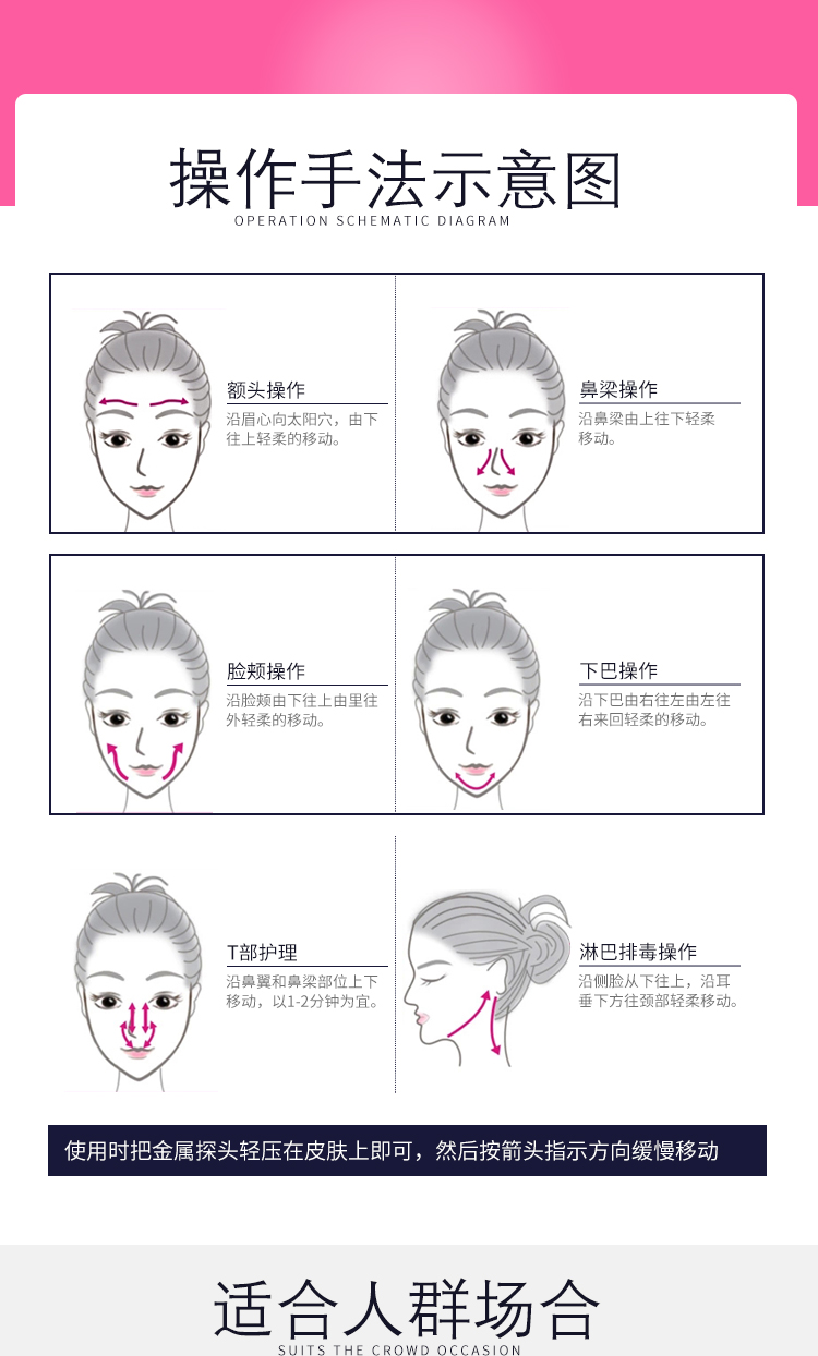 溫和潔面模式為任何面部護理墊定最重要的基礎。它完美融入您的日常護理,幫助您去除死皮,打開堵塞毛孔并清除臟污、油膩及化妝品殘留。比手洗更深層地清潔肌膚,并清除深層毒素就會導致痤瘡、暗瘡、黑色素沉淀;能加快細胞新陳代謝、血液循環,讓眼角紋、黑眼圈、松弛的面部皮膚遠離人的臉頰。在保持肌膚自然水潤的同時促進肌膚有效吸收您最喜愛的護膚產品。抗衰老模式通過作用于肌膚表面下的溫和低頻脈動,放松面部肌肉,促進細胞再生,讓肌膚更光滑細膩,煥發自然光澤,重現青春光采。